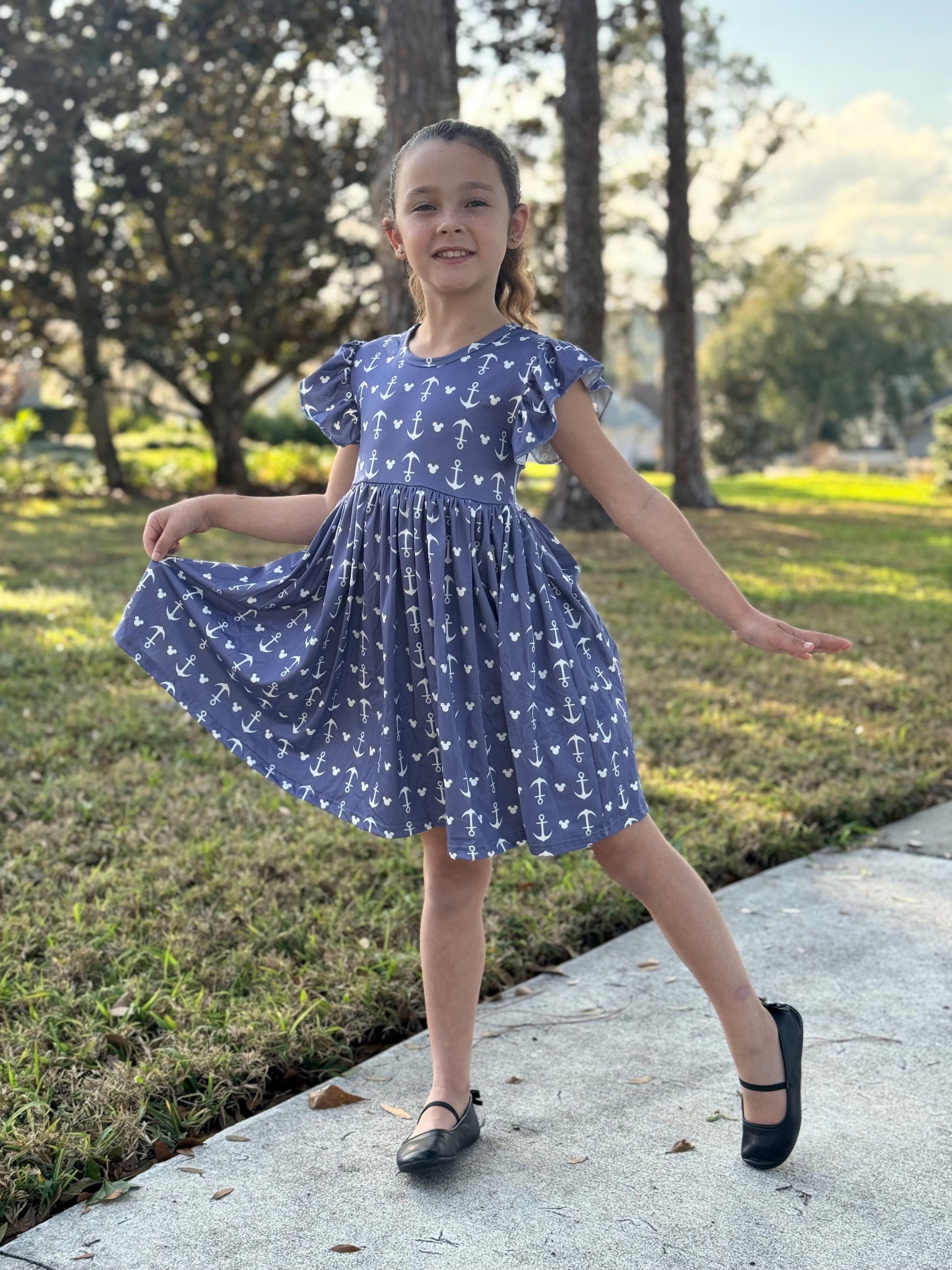 Cruise Anchor Mouse girls twirl dress with flutter sleeve